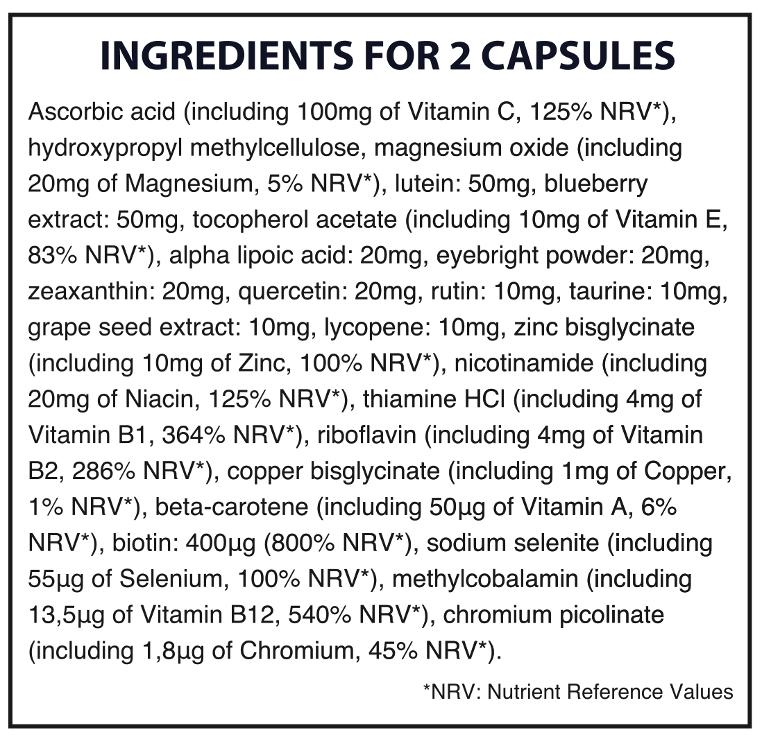 Over 4 carefully selected ingredients that support healthy vision, including: